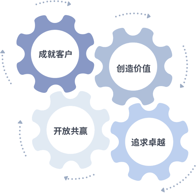 成就客户是一切决策的出发点,,,,创造价值是衡量所有工作的标准,,,追求卓越是w66.利来做事做人的态度,,,,开放共赢是w66.利来的格局也是最终的结果。。。。价值观的齿轮环环相扣,,推动着组织里的每个人不断向前。。